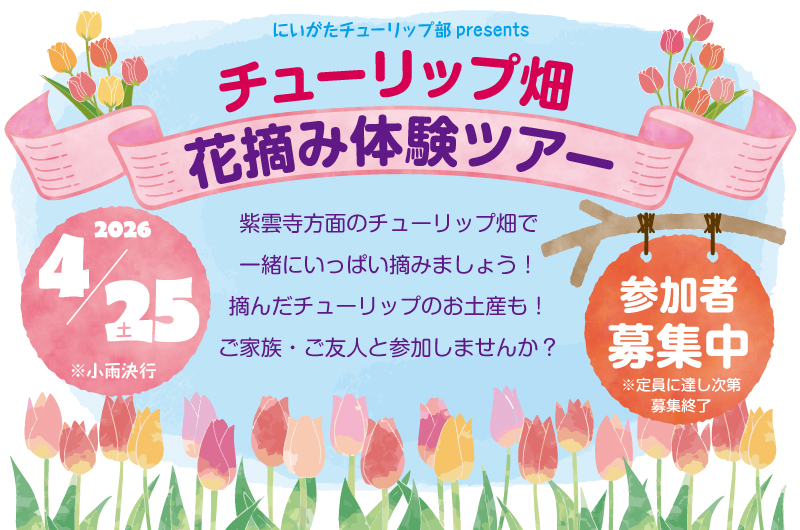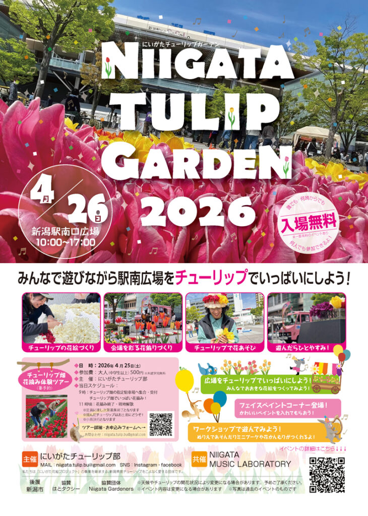 そんな春を追いかけて、チューリップと過ごす春の休日イベント NIIGATA TULIP GARDEN 2026 の開催をお知らせします。